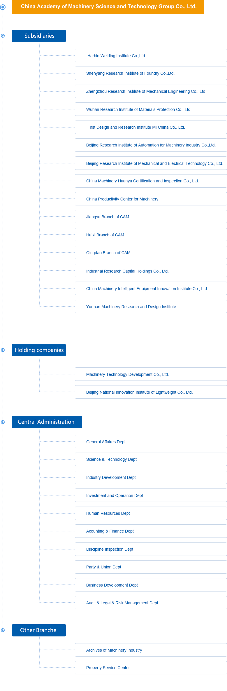 Harbin Welding Research Institute Co., Ltd. Zhengzhou Machinery Research Institute Co., Ltd. Zhongji First Design and Research Institute Co., Ltd. Wuhan Material Protection Research Institute Co., Ltd. Beijing Machinery Industry Automation Research Institute Co., Ltd. Beijing Institute of Mechanical and Electrical Research Co., Ltd. Machinery Development Technology Co., Ltd. China Machinery Productivity Promotion Center Zhongji Huanyu Certification and Inspection Co., Ltd. Beijing Machinery Science Guochuang Lightweight Research Institute Co., Ltd. Yunnan Institute of Mechanical Research and Design Jiangsu Branch of General Academy of Mechanical Science Research Co., Ltd. Haixi (Fujian) Branch Co., Ltd., General Academy of Mechanical Sciences Qingdao Branch of General Academy of Mechanical Science Research Co., Ltd.