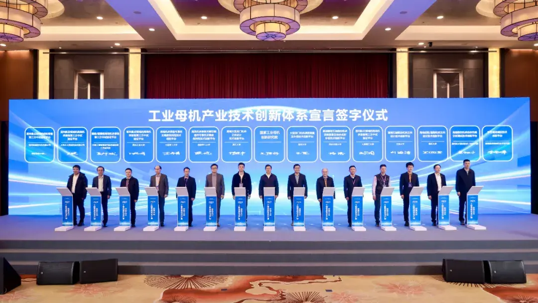 ▲王德成与14家创新体系组成单位代表共同签署了《工业母机产业技术创新体系建设宣言》。